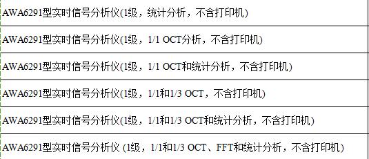 AWA6291實(shí)時(shí)信號(hào)分析儀主要技術(shù)性能: 1、信號(hào)輸入:插座:X9-6z,可選LEMO插座;輸入阻抗:150kΩ//100pF;最大輸入電壓:10V(有效值)。 2、頻率范圍:10Hz~20kHz(±0.2dB),1Hz~23kHz(±1.0dB)。 3、量程增益:-10dB、0dB、10dB、20dB、30dB、40dB。 4、自生噪聲電壓:小于4μV(1Hz~23kHz)。 5、電壓測(cè)量范圍: 15μV~10V (有效值)。 6、信號(hào)輸出:插座:Φ3.5立體聲耳機(jī)插座;輸出阻抗:1kΩ;最大輸出信號(hào)電壓:3.2V 7、級(jí)線性范圍:大于90dB。 8、A/D位數(shù):24位。 9、采樣頻率:48kHz。 10、顯示器:240×160點(diǎn)陣LCD,有EL背光。 11、輸出接口:RS232接口,可接微型打印機(jī)打印測(cè)量結(jié)果,也可接PC機(jī)送出測(cè)量結(jié)果和實(shí)時(shí)分析結(jié)果。USB接口,mini B型,符合USB1.1,兼容USB2.0,可連至PC機(jī)。 12、數(shù)據(jù)存貯:測(cè)量結(jié)果保存在48Mbit的FLASH中,也可將數(shù)據(jù)轉(zhuǎn)存到U盤中。 13、內(nèi)部日歷時(shí)鐘:誤差小于1分鐘/月。 14、儀器內(nèi)部自帶符合GB 2312標(biāo)準(zhǔn)的漢字庫(kù),可在儀器上輸入中英文測(cè)點(diǎn)名。 15、用戶可設(shè)定開機(jī)時(shí)間及關(guān)機(jī)時(shí)間。開機(jī)穩(wěn)定時(shí)間:小于30秒。 16、工作電源:6節(jié)LR6堿性電池或可充電電池,也可使用8V外部電源。 17、外形尺寸:210×90×38(mm)。 18、質(zhì)量:0.5kg。 19、電磁兼容性:滿足IEC 61672.1:2002標(biāo)準(zhǔn)中對(duì)X類聲級(jí)計(jì)的要求。 20、工作環(huán)境: 工作溫度:-10℃~+50℃;相對(duì)濕度:25%~90%; 大氣壓力:65kPa~108kPa。