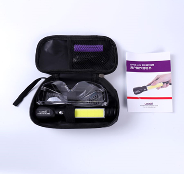 手電筒一把、充電電池一節(jié)、LUV-10防護眼鏡一副、充電線一根、布袋一個。