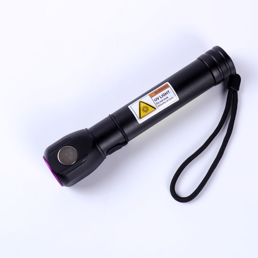 光源:360-370nm 單顆紫外線led 強度:38cm處紫外線更高8000uw/cm2 白光:3w cob 5700k 1米處中心照度約3000lux 電池:1節(jié) 2600mha鋰電池 尺寸:長度18cm,頭部直徑4cm,尾部直徑3cm 質(zhì)量:300g(含電池) 充電:USB充電 運行時間:充滿電連續(xù)工作3-6小時 充電時間:約4-6小時 認證:CE認證 包裝:20x13x8cm 毛重:1kg