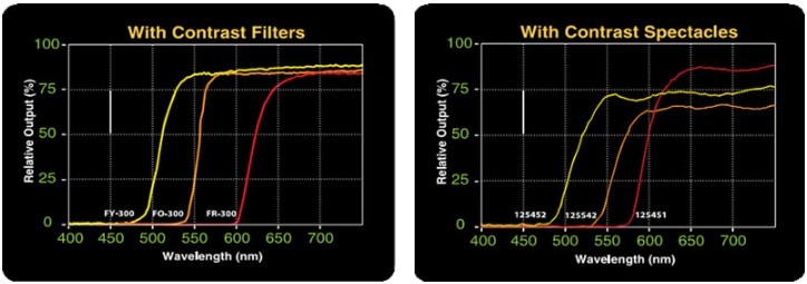 光譜圖(下圖分別為加上對比濾色板及戴上熒光增強眼鏡后的光譜圖)