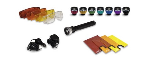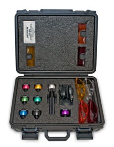 OFK-8000 OPTIMAX™ Multi-Lite™ 多波段警用檢查套裝配有結(jié)實的黑色陽極化鋁手電殼體、八個可快速更換的LED燈頭(UV-A(長波紫外)、紫光、藍光、藍綠光、綠光、琥珀光及白光)、三個插入式濾色板(黃色、橙色及紅色)、交流及直流充電器、四個眼鏡(紫外防護、橙色、黃色及紅色眼鏡)及一個帶泡墊的手提箱.。