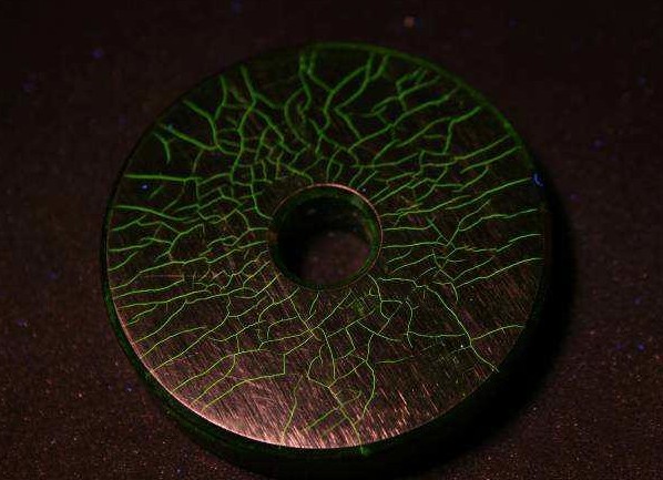 利用LUYOR-21紫外線閃光燈拍的熒光滲透的標(biāo)準(zhǔn)塊: