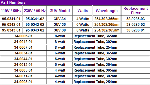 UVP 3UV™ Lamps Innovative, versatile and patented 3UV™ lamp houses multiple wavelengths: longwave, shortwave and midrange UV in one lamp for multiple applications. Lamp is available in four, six or eight watts.