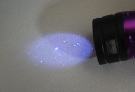 大多數(shù)的體液在高強(qiáng)度的紫外線作用下可以看到,是因?yàn)轶w液有自然熒光反射的特點(diǎn)。在復(fù)雜的刑偵現(xiàn)場(chǎng),可以利用高強(qiáng)度的紫外線燈簡(jiǎn)單及不復(fù)雜的使用方式尋找到有價(jià)值的痕跡。在高強(qiáng)度紫外線能量的激發(fā)下,這些體液的熒光反射是人的肉眼可以直接看到的。雖然,這種方式不能直接確認(rèn)所找到的體液是哪一種,但是,通過(guò)使用高強(qiáng)度紫外線燈遠(yuǎn)距離大面積的搜尋,可以直接幫助你確定在哪里有提取價(jià)值的痕跡物證,然后可以對(duì) 這些地方進(jìn)行編號(hào)標(biāo)出,從而為下一步的分析提供有價(jià)值的物證。